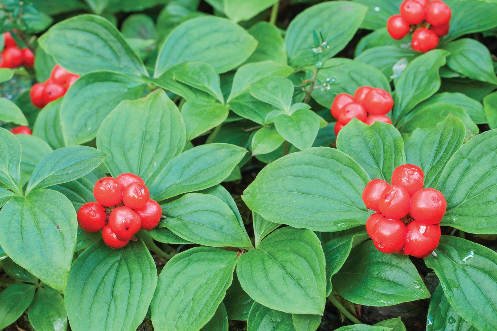 Also known as bunchberry, crackerjack or kakillânik, crackerberries thrive in cool, mossy areas along the edges of bogs and woods, growing in little clusters in the centre of a bouquet of leaves. While edible, the small red berries are almost tasteless, but since they are high in pectin they can be used to thicken jams and puddings. Locals have nicknamed them “crackerberries” because of the distinctive “crack” or “pop” sound they make when you crunch them between your teeth. The crackerberry plant showcases white flowers in summer, deep purple leaves in fall and bright red berries that persist through winter. Its beauty has inspired Labrador art and design, frequently adorning traditional handmade items such as parkas.