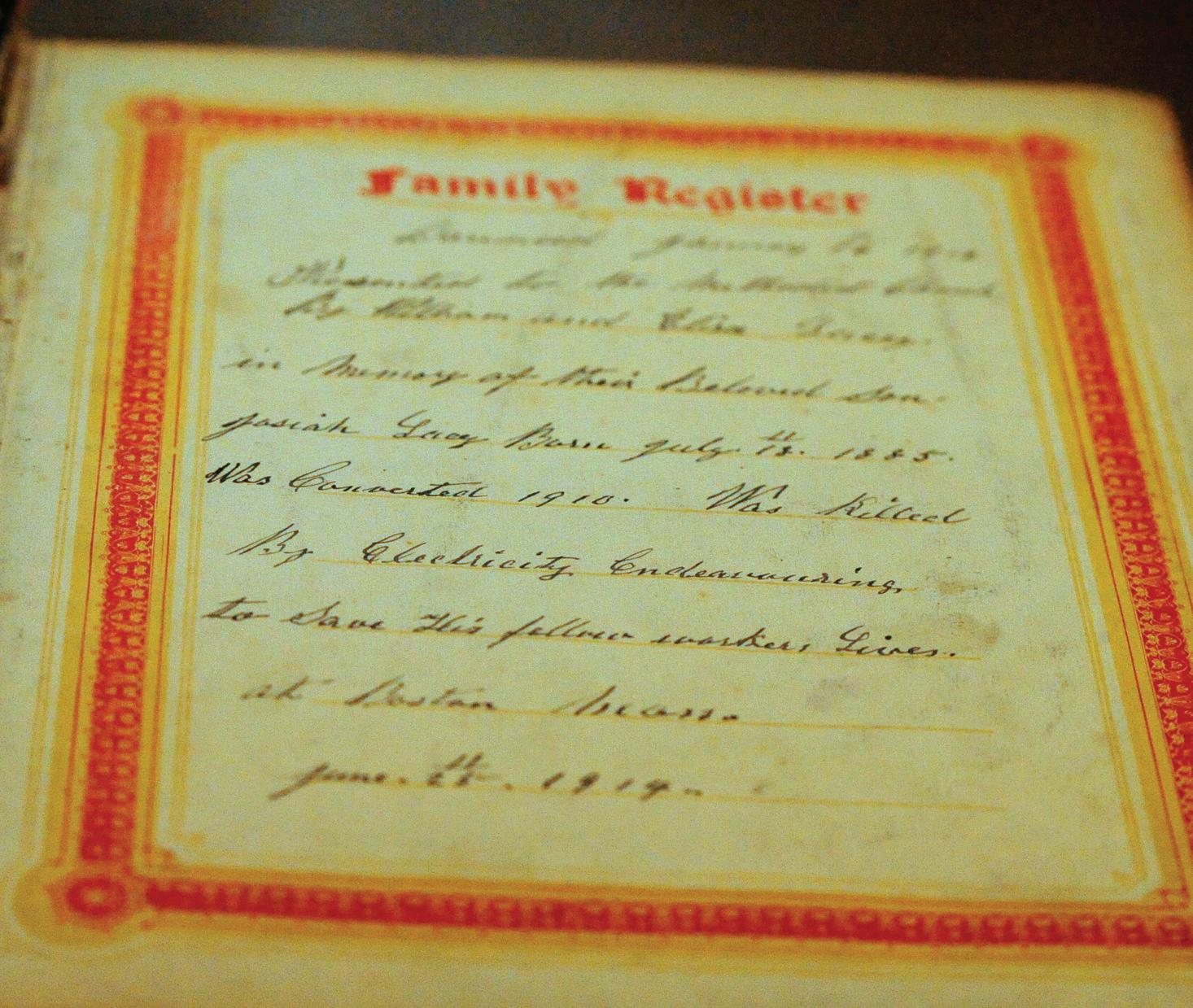 “It has been with me a long time and I always hoped it would find a way home to the direct descendants of the man in whose memory it was dedicated,” he shares. “Josiah Lacey was killed in an accident in Boston. I don’t want the bible to sit on a shelf or in a box in a museum where nobody will ever see it or use it. I’d really like