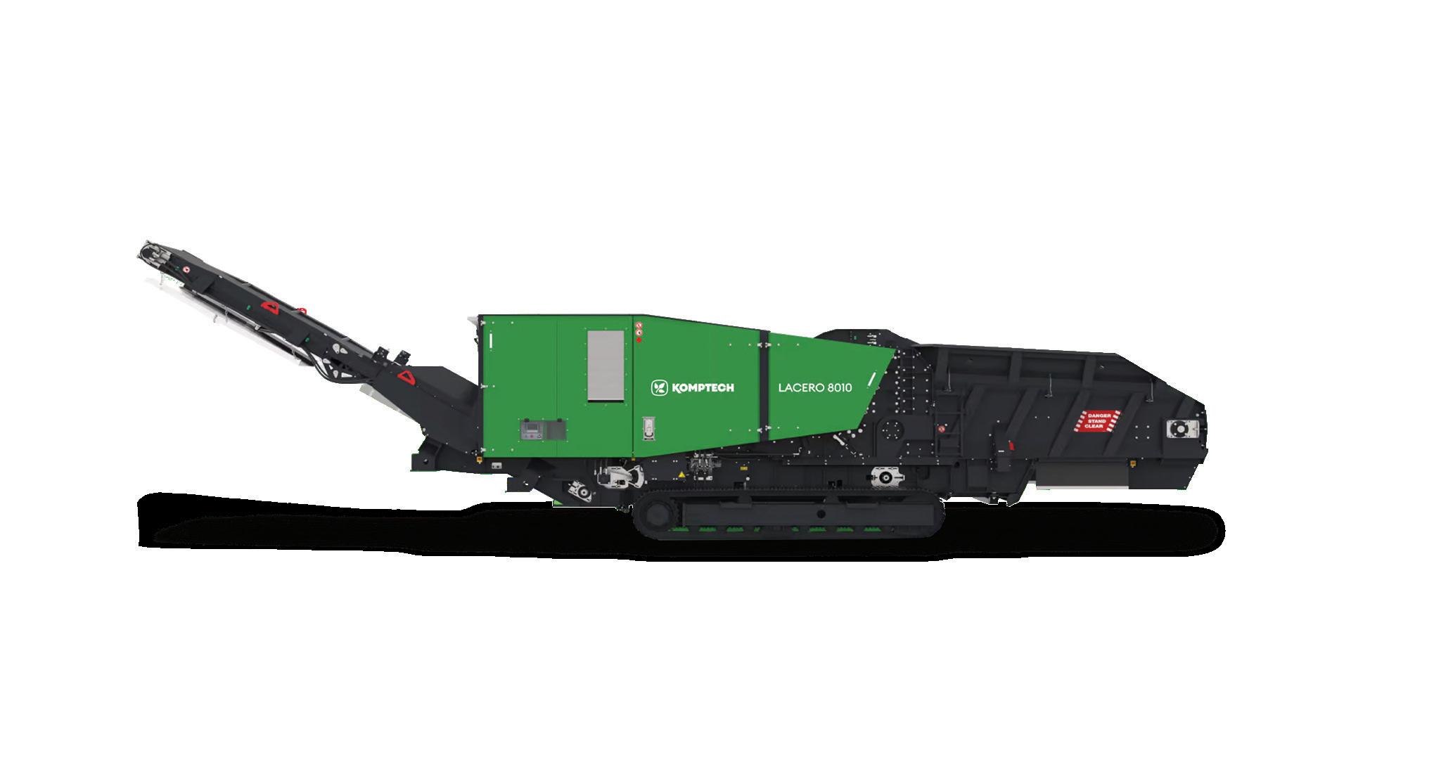 The Komptech Lacero 8010 is a powerful, high-speed, horizontal grinder purpose-engineered and built for the demanding North American wood waste, biomass, mulch, orchard/land clearing, and organics markets.