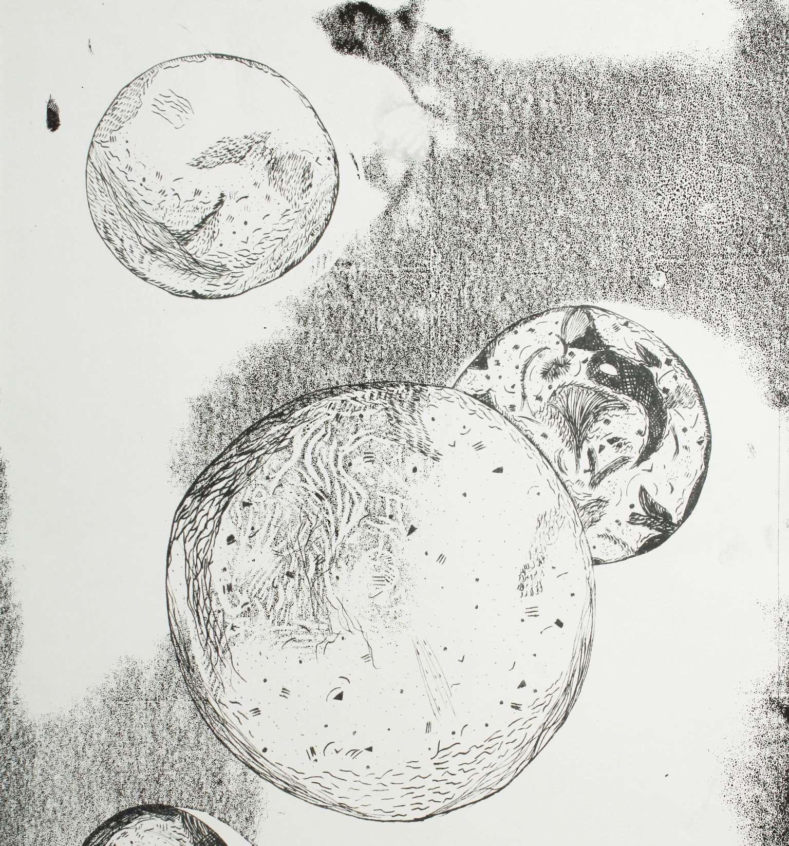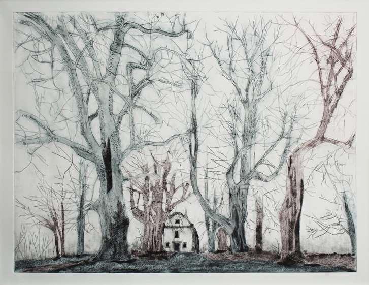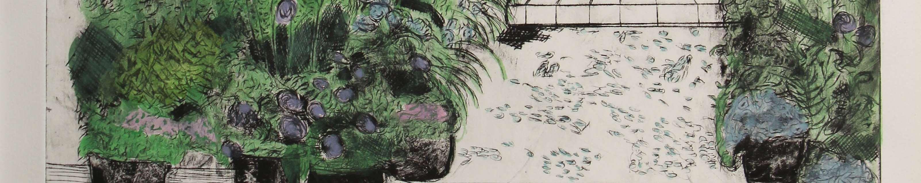 On the right, hidden by a lightning-struck apple tree, a Bugatti lay crashed into a garden wall. Infested by rats, the car was attacked by the vilest, most robust vines – the only plants able to overcome the bleeding car's lethal, black blood. A grinning champagne bottle reclined on the dashboard in view of the hollowed eyes of someone whose ivory hands still held the wheel.