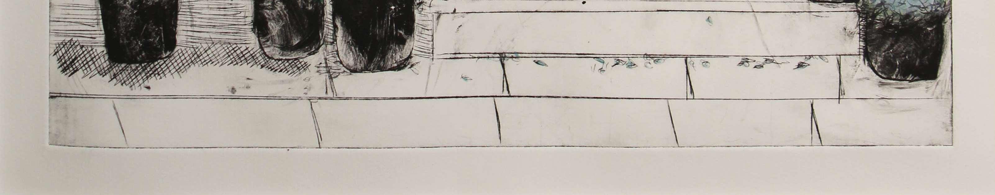Having fought the army of weeds and thorns to the end of the driveway, I saw decrepit stone steps lined by two handrails. One was ensnared by such a mass of creepers that it was hanging limply off the steps' edge, and the other completely gone, aside from tell-tale broken balusters that stabbed in anguish into the heaving rain.