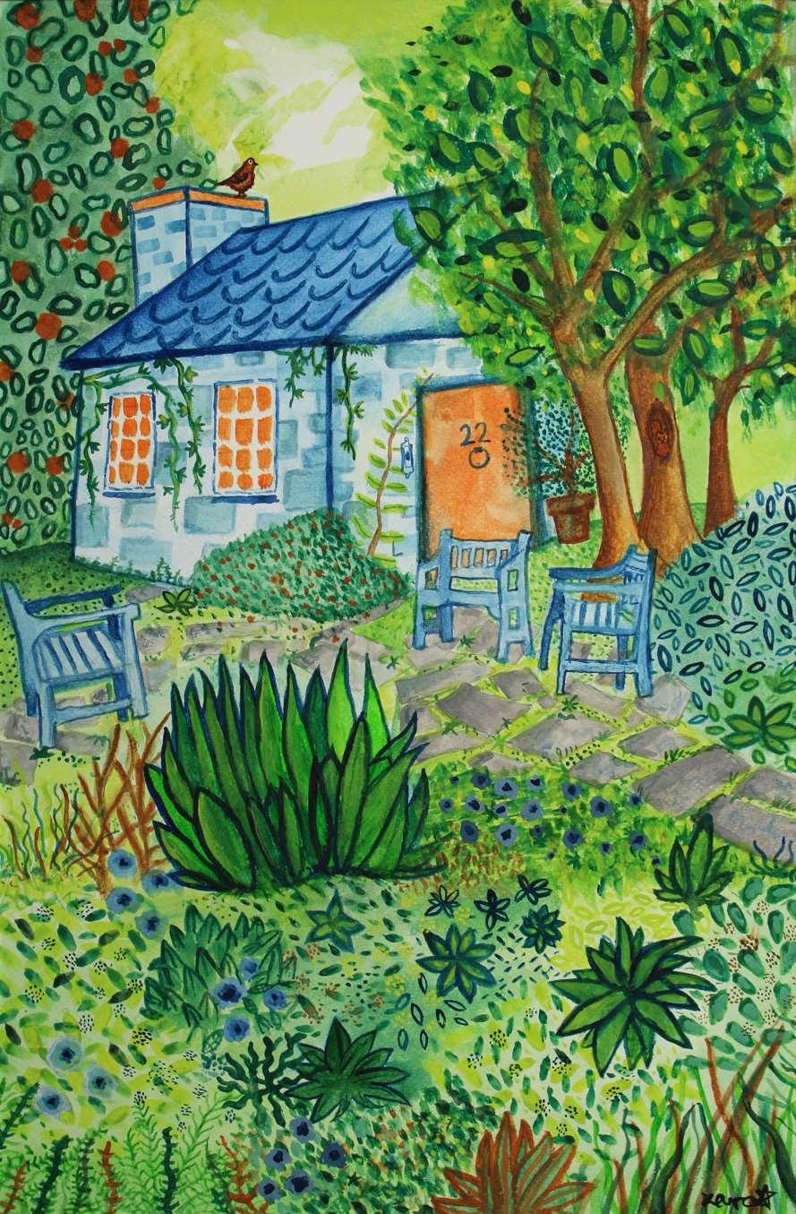 Towering cliffs bursting with tall grasses and vibrant wildflowers stretch around the village as far as the eye can see, offering a protective embrace from any storm that may have lost its way. Lush green fields stretch to the horizon, full of satisfied sheep munching on the feathery grass. Paths flow over the landscape towards the ocean. Sharp rocks jut out of the cliff face. Hidden coves lay nearby, entrances to unseen lagoons where light leaps and shimmers over still turquoise waters like the wings of a dragonfly reflecting the morning sun.