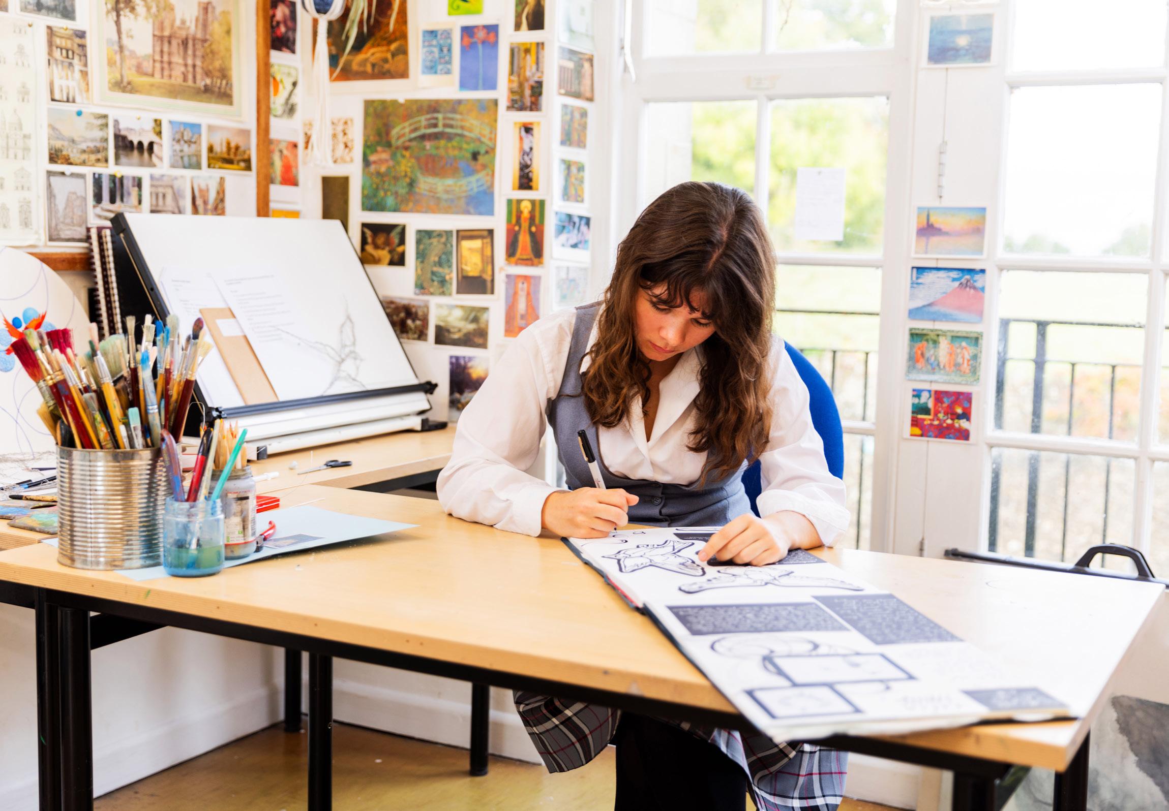 The first phase will involve pupils exploring a range of drawing, painting, print, film and sculpture, with an emphasis on observation and building their creative skills. There will be weekly life drawing class which pupils are expected to attend. They will also research a range of related artists, developing their critical and contextual analysis. During the course, pupils will take part in visits to galleries locally and in London, and there may be an opportunity for an overseas study tour.