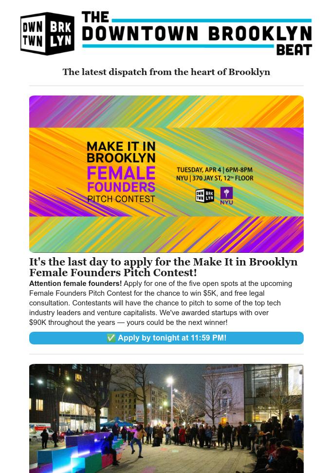 Our weekly newsletter, featuring news, deals, and events happening throughout Downtown Brooklyn.