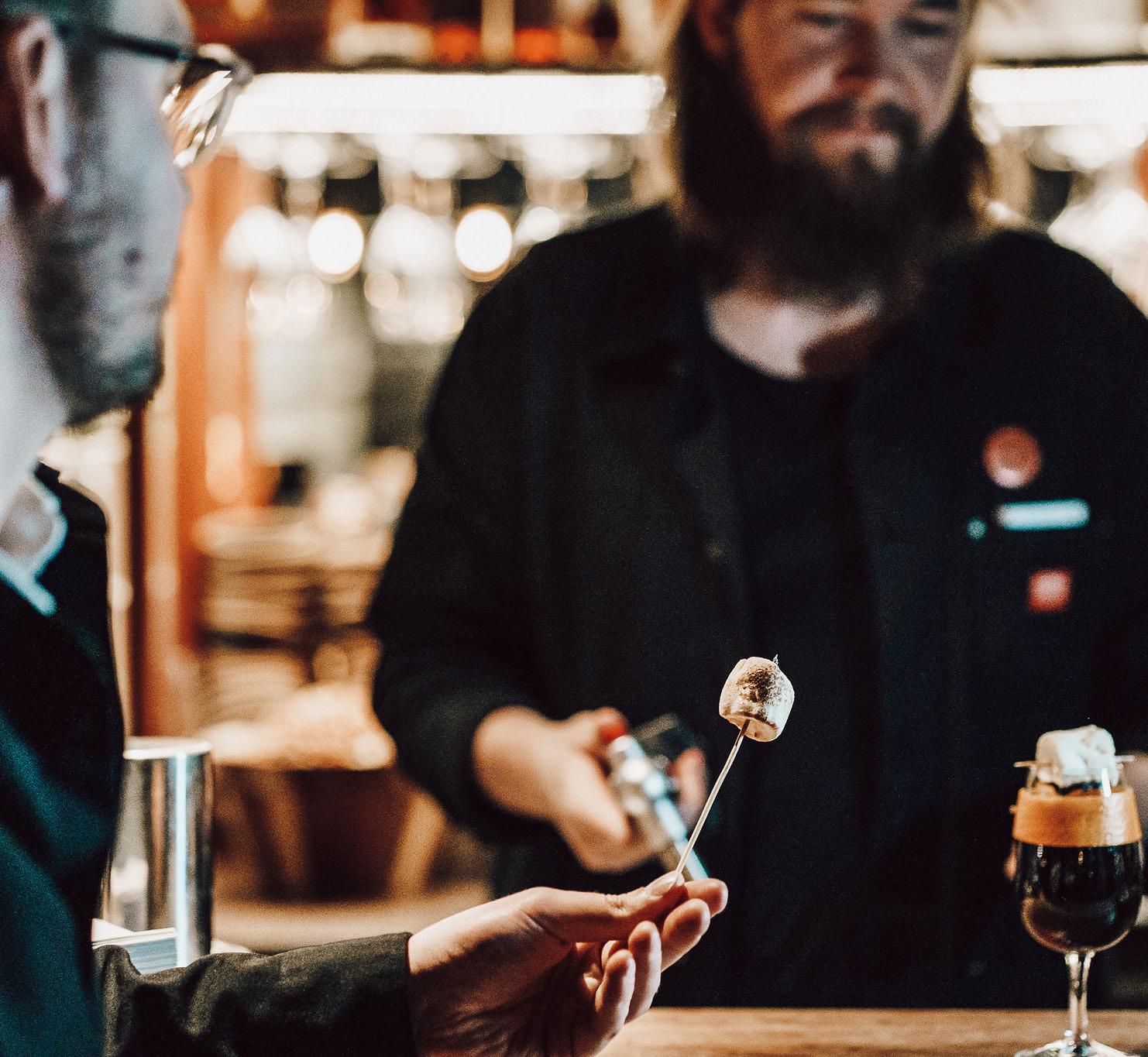 Stiff, long or mocktail; pick your favourite at Campfire Bar, here prepared by our bartender Måns.