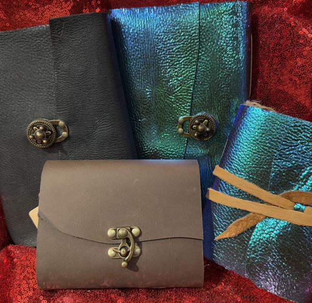 Handmade leather journals and sketchbooks by local artist Jeff James. $28-$78