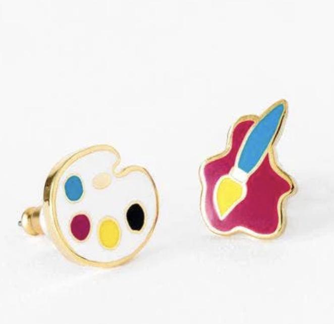 Paint Brush & Palette Gold Earrings, $20