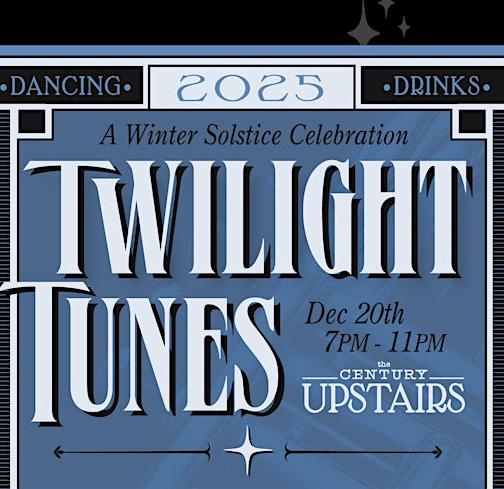 Twilight Tunes at The Century Upstairs, Dec 20, 7pm, live jazz, winter-themed cocktails, small bites, raffle prizes, $55