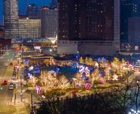 Cadillac Square is your holiday shopping destination, featuring curated Detroit vendors with unique gifts — from apparel and jewelry to home décor, toys, pet goods, and treats. Discover oneof-a-kind finds in this festive outdoor marketplace.