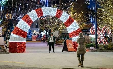 Bring the whole family downtown to explore Candyland — a glowing wonderland with giant light features, a gingerbread house, festive figures and photo worthy winter backdrops.