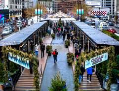 Warm up with seasonal drinks at CHALET 313, and explore artisan goods at the Downtown Detroit Markets in Cadillac Square.