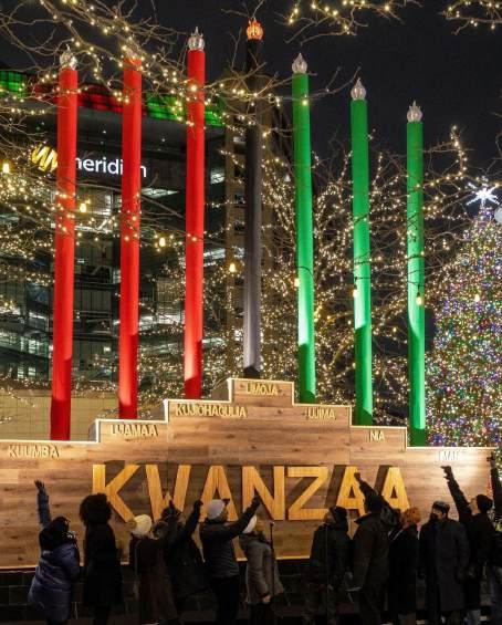 In partnership with Alkebu-lan Village, Councilman Scott Benson and the City of Detroit, the Downtown Detroit Partnership is proud to host the Motor City Kwanzaa Kinara. The 30-foot-tall monument brings a celebration of African American life, community and culture to the heart of Detroit.