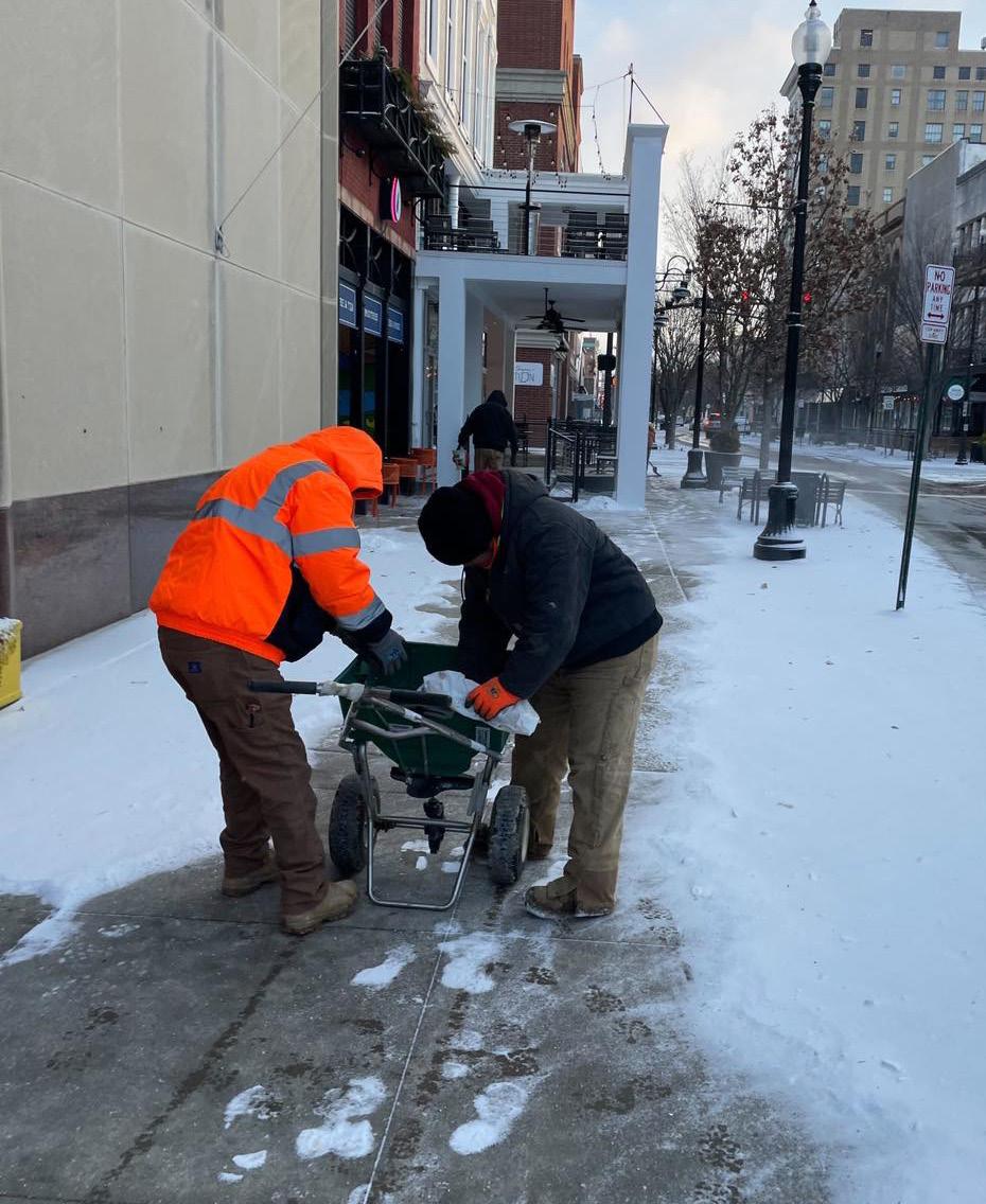The EID’s snow removal contractor clears sidewalks after a winter weather event.
