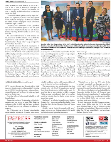 is taking some of that burden out and when they do come to us with a project to say, ‘Can we help mitigate already existing problems there?’” Powers added, “You’re not going to be able to win the fight against all new development in Manhattan, but what you can do is to make sure you’re addressing existing needs like pre-k seats.” In addition to Extell’s lease to the School Construction Authority on Third Ave. and 95th St., the 144 seats that just opened on E. 57th St. and Second Ave. in a 65-story tower came from a deal made when Powers was chief of staff to former Assemblymember Jonathan Bing more than half a