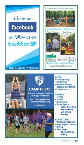 ARTS: • Photography • Multimedia • Graphic Design • Organic Gardening • Culinary Arts SPORTS: • Tennis • Soccer • Swimming • Water Sports - Wake boarding - Waterskiing - Jet Skiing - Tubing ADVENTURE: • Whitewater Rafting • High Ropes Course • Biking • Field Trips - Theme Parks - Hiking 2018 | NYParenting.com