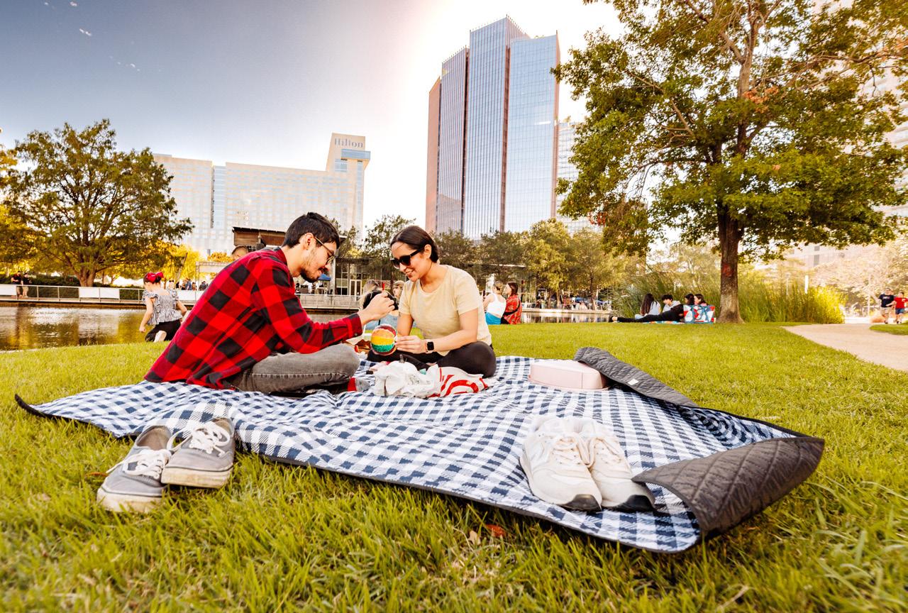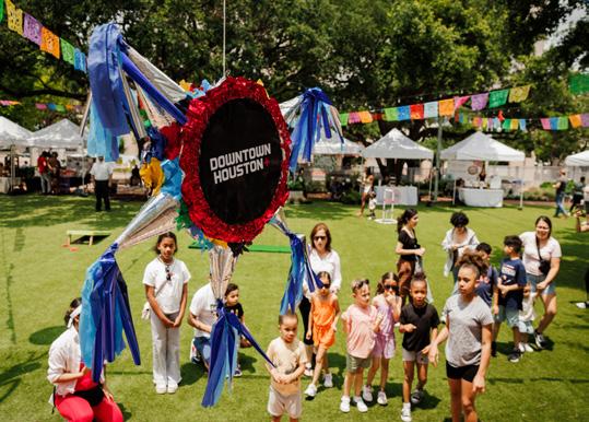 Regular programming kept Downtown’s public spaces humming. The Sounds of the City cranked up a We (Heart) HOU concert series and partnered with the Mayor’s Office of Cultural Affairs and Consul General of France for Make Music Day, 2024. Market Square Park Farmer’s Market returned in March and taught marketgoers DIY skills, planting seeds for Earth Day, making pickles, and screen printing. We celebrated Cinco de Mayo with a Bayou City Zydeco twist before the traditional mariachis and piñata bash. Trebly Park’s Summer Trivia Nights teased our brains, while yoga classes fueled our bliss. Back by popular demand, Movies Under the Stars and Blanket Bingo build community bonds with Downtown’s parks.