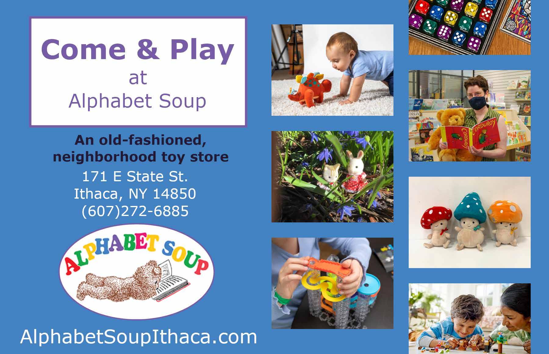 Traveling with Children? Check out Alphabet Soup where you’ll find dozens of educational toys, puzzles, games, books, and more! Plus, stop by The Brain Shoppe for various brain teasers for the whole family to enjoy. You should also explore the Sagan Planet Walk, named after famed Cornell University astronomer Carl Sagan, a scale model of the solar system which originates with the sun on the Commons and stretches 3/4 mile to the Sciencenter. The inner ring planets all fit on a short section of Bank Alley.