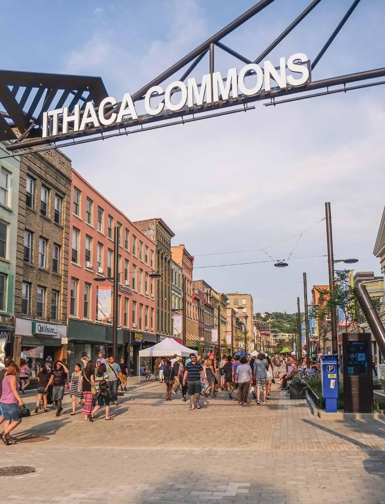 When people think of Ithaca, they often think of Cornell University, Ithaca College, the gorges, or the Ithaca Commons. Our awardwinning three-block pedestrian mall downtown is the city’s cultural and economic center and a truly iconic feature of Ithaca.