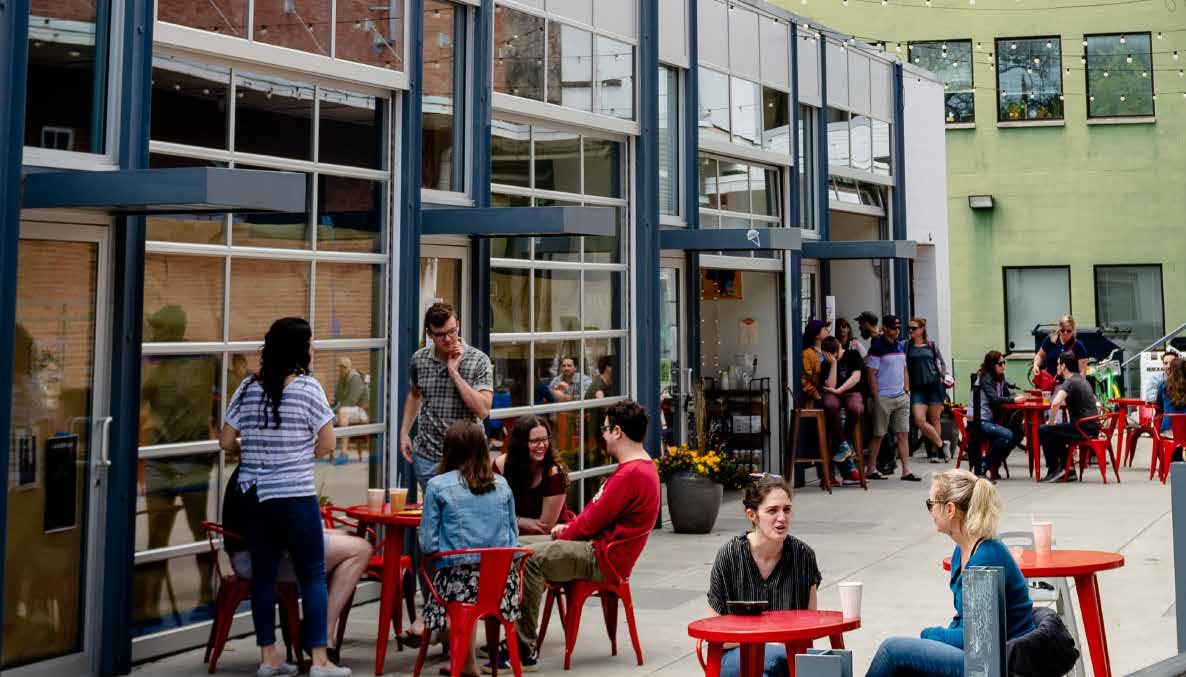 3. Press Bay: A collective outdoor dining experience with common area tables & chairs. Tuck into some tasty treats and drinks from Mama Said Handpies, One Ring Donut, Press Cafe, or Lucky Hare Brewing.