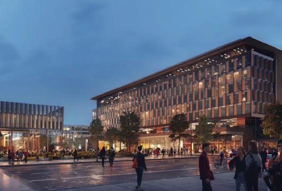 Proposed development of the 14-acre High Street parking lot to include grocery store, parking garage, residential, office, hotel and entertainment venue.