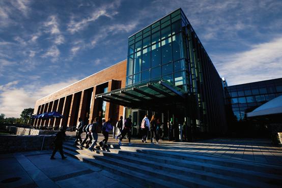 97,710 sq. ft. features a dining hall, conference and meeting rooms, fitness center, a bookstore and community outreach areas for student organizations.