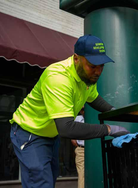 Services provided under this business line include pan-andbroom street and sidewalk sweeping, soft-pressure washing of sidewalks and hardscape surfaces, graffiti removal, litter and debris collection, and routine landscape maintenance. These activities help preserve the appearance of public areas, support economic activity, and enhance the overall experience for residents, visitors, and businesses.