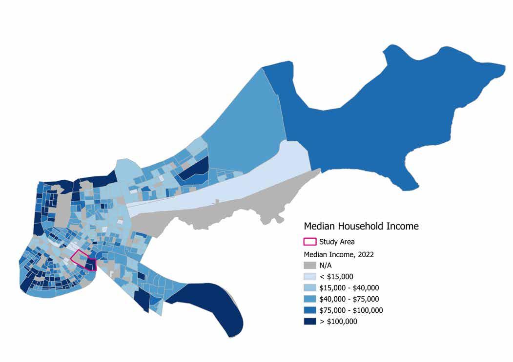 Downtown New Orleans has roughly 3,900 residents, which makes up just 1% of the city's total. However, the area has seen significant growth, experiencing a nearly 50% increase in population since 2000, even as the broader city and surrounding region have faced challenges. Despite this, the pace of growth has slowed in recent years, with only a 2.6% increase from 2018 to 2022, according to the most recent Census data. One possible factor: high visitation demand has led to small apartment buildings being converted into short-term rentals, limiting the housing supply. Demand for downtown living remains undiminished, and consequently, downtown rents are significantly higher than those in the rest of the city, with the average rent reaching $1,962 per unit in 2023.