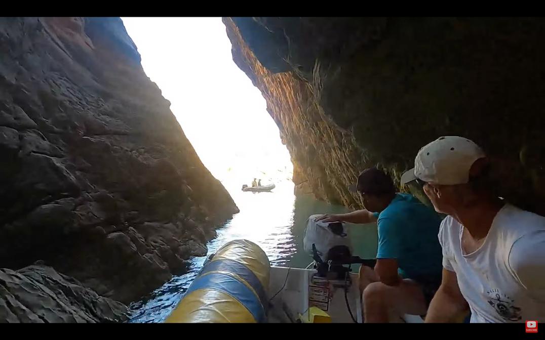 As we approached, we could see a trail of foam extending away from us into the bay on the other side From our position, we could also see the 2-metre drop in water level as it passed through this tight gorge. As such, we were EXTREMELY careful not to get too close as we could easily be sucked through