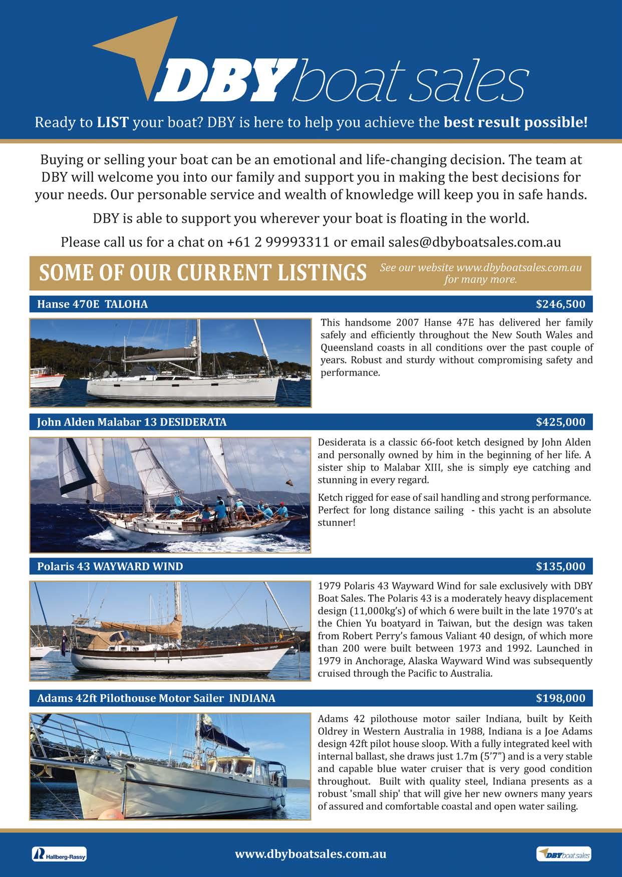 to enquire about advertising, contact John Hembrow Email: admin@downunderrally.com Website: downunderrally.com IN THE 114 PAGE AUGUST ISSUE OF AHOY! 4 6 8 12 23 24 29 33 34 38 45 56 67 80 86 101 102 UPDATE LING NEW AUSTRALIA & THESOUTHPACIFIC AHOY! "IT'SFREETOENJOYAHOY!" AHOYSAILING.AU