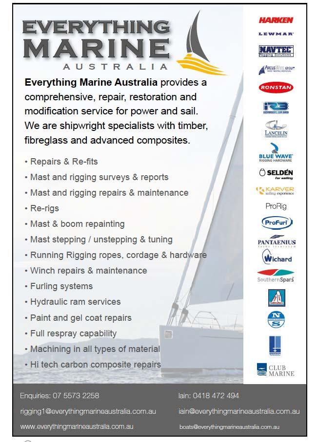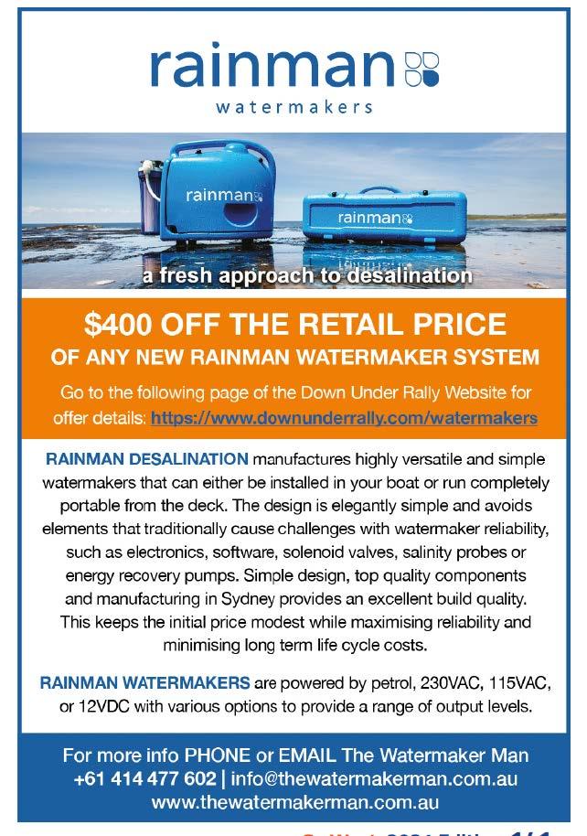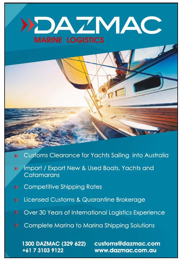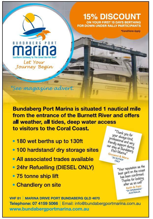 Buisiness Directory www.eastcoastmarina.com.au ManlyBoatHarbour,Brisbane. 330securewaterberths, cateringforboatsupto18m. For Down Under Rally Member Discounts Visit: www.downunderrallymembers.com/partners AvailableinprintoreBook