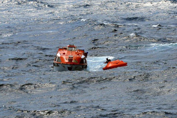 Pacific Dawn lifeboat recover the crew of the Liberty from their liferaft