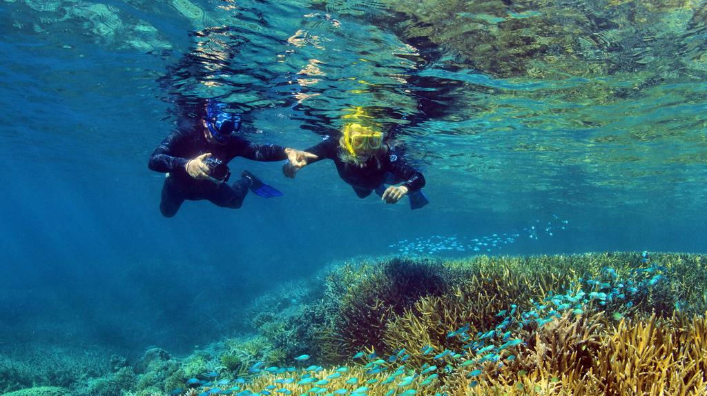 Avoidsplashingaroundlikeaninjuredfish.Swimorsnorkelquietly,smoothly,andeasily likeahealthyseacreature.