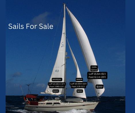 Members Marketplace 135% Genoa (never used.) Pro radial by Dimension, in 7 oz and 8 oz Blend Luff 15.6 m (51' 3") Leech 15.3 m (50' 3") Foot 7.85 m (35' 9") $2600 110% Genoa (used) 9 to 10 oz Fair condition Luff 15.50 m (51') Foot 6.1 m (20') $300 Inner head sail (used) 9 to 10 oz Fair condition Luff 10.05 m (33') Foot 3.35 (11') $200 Main sail (used) leech battened 10 oz Fair condition, Dutchman reefing. Luff 14.335 m (47') Foot 3.965 (13'). $300 4 SAILS FOR SALE OFF A 41 FT MONO-HULL CUTTER RIG. 1. 2. 3. 4. IRIDIUM GO Purchased 2018 New Battery 2022 In like new condition. Comes with a mounting bracket. $800 AUD Call: +61 0475 754 116 Email: DazzlerSale@Gmail.com GALVANISED CHAIN 12MM 80M Lots of life left. MUST BE SOLD - REDUCED TO $500.00 Available for collection from The Boat Works before 10th May 2023 Call Deb on 0407 330 305 SOLD