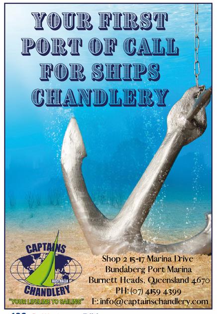 DOWN UNDER RALLY MEMBERS LOCATED AT BUNDABERG PORT MARINA. PH: (07) 4159 4399 E: info@captainschandlery.com W: captainschandlery.com Our well-stocked family-owned, and operated ships chandlery has been helping cruising yachties for almost 20 years! Ask about Discounts For Down Under Rally Members