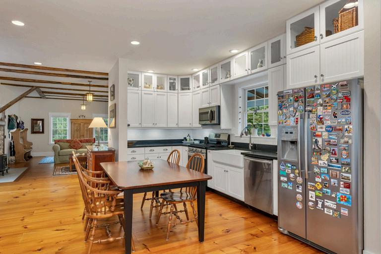 Welcome to Bailey Point, peacefully resting on a picturesque 6-acre peninsula, offering over 1000 feet of waterfrontage, providing an unparalleled sanctuary Impeccably restored, this charming 3-bedroom farmhouse exudes timeless elegance and offers endless opportunities Wide pine floors and exposed beams showcase the historic character Discover built-in shelving, an inviting entryway, and a stone fireplace that adds to the charm The kitchen impresses with tall custom cabinets, a walk-in pantry, and ample storage space. The farmers' porch, a perfect spot to savor morning coffee while taking in the breathtaking views of the water. Feel the embrace of nature in the enclosed porch, a space that invites you to unwind and connect with the outdoors Outdoor living has endless possibilities with a private dock awaiting your waterfront adventures, while a cozy sleeping shed by the lake beckons for lazy afternoons by the water Enjoy dining on the outdoor patio, gather around the firepit under the starry sky, or tend to the raised garden beds Additional amenities include an insulated walk-out basement, central AC for year-round comfort, & a whole-house generator for peace of mind The detached barn with a sturdy Steel I beam Experience the tranquility and charm of Bailey Point, where modern comforts meet rustic elegance in a harmonious blend of nature and luxury Your waterfront retreat awaits
