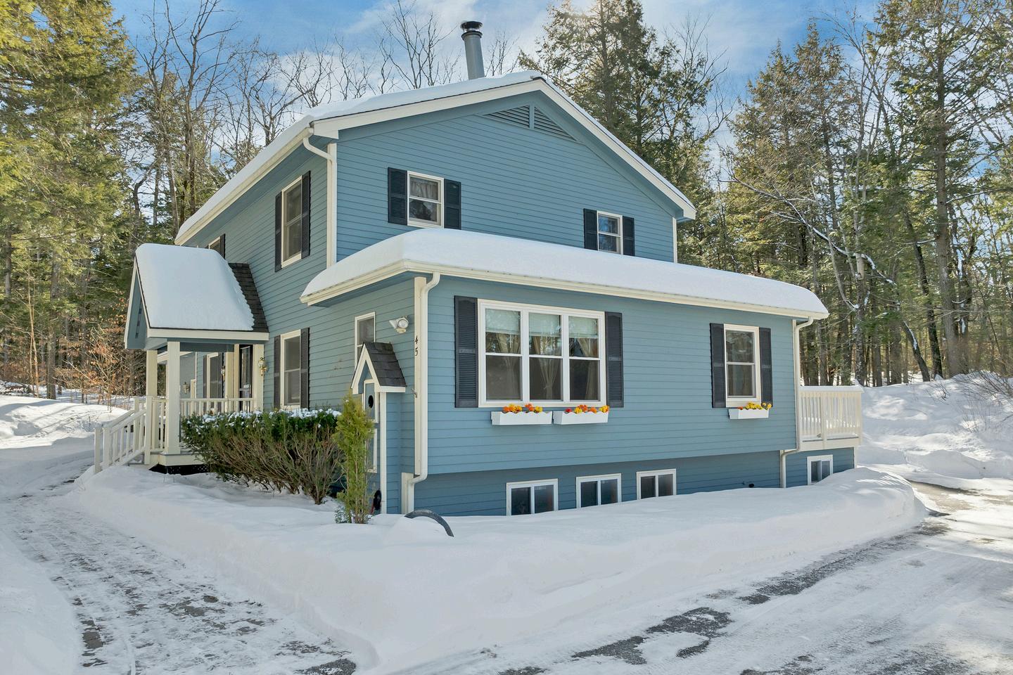 Welcome to 45 Timber Lane, a spacious contemporary home located in the desirable Woods at Four Seasons community in Laconia Offering approximately 3,300 square feet of finished living space, this 3-bedroom, 3-bath property sits on a level 0.40-acre lot at the end of a quiet cul-de-sac. Originally built in 1987 and renovated in 2003, the home features an open and functional layout with generous living areas, a wood fireplace, primary suite with private bath, finished lower level space, and a 2-car attached garage with direct entry Public water and sewer, multi-zone heating, and central air conditioning add year-round comfort. Property includes deeded beach access to Lake Winnipesaukee with shared-private dock access (subject to association rules and availability). Located just minutes to Weirs Beach, shopping, restaurants, and major Lakes Region attractions Membership opportunities may be available through Summit Resort, located nearby, offering access to indoor and outdoor pools, fitness facilities, and additional amenities. Buyers to perform their own due diligence regarding availability, cost, and terms of any optional memberships A solid year-round home or Lakes Region retreat in a well-established community
