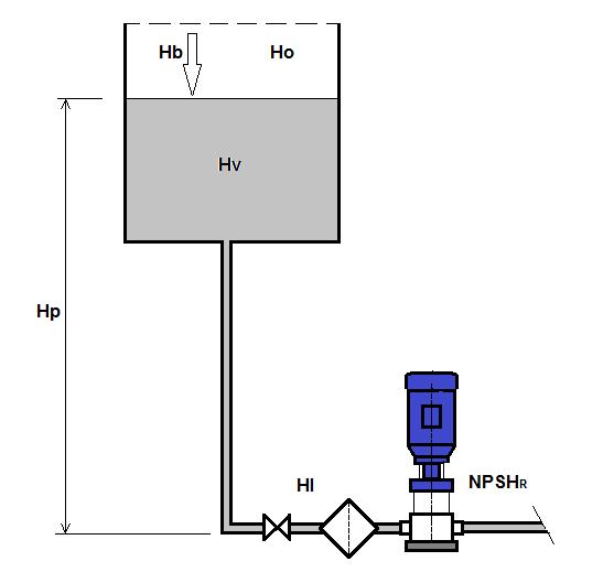 Minimale toevoerdruk NPSHreq. + 1m