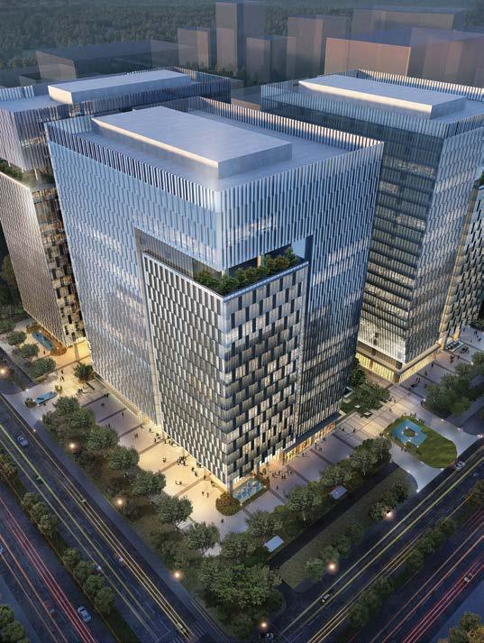 Located on the north bank of Jiulong Lake within China-Singapore Guangzhou Knowledge City, the 330m-tall Knowledge Tower project is a symbol of continued cooperative relationship between Singapore and Guangzhou City. The tower’s core structures have currently reached 100m with record-breaking speed since the start of construction in June 2021. It is the first of a series of super high-rise developments along the city’s Jiulong Lake CBD District, and will feature a ‘Lifespine’ which will run through the middle of the tripartite-form tower and consists of five thematic atria that act as active social spaces for future work communities. Topping the tower will be a five-star international hotel. The Knowledge Tower is slated for partial completion in 2025.