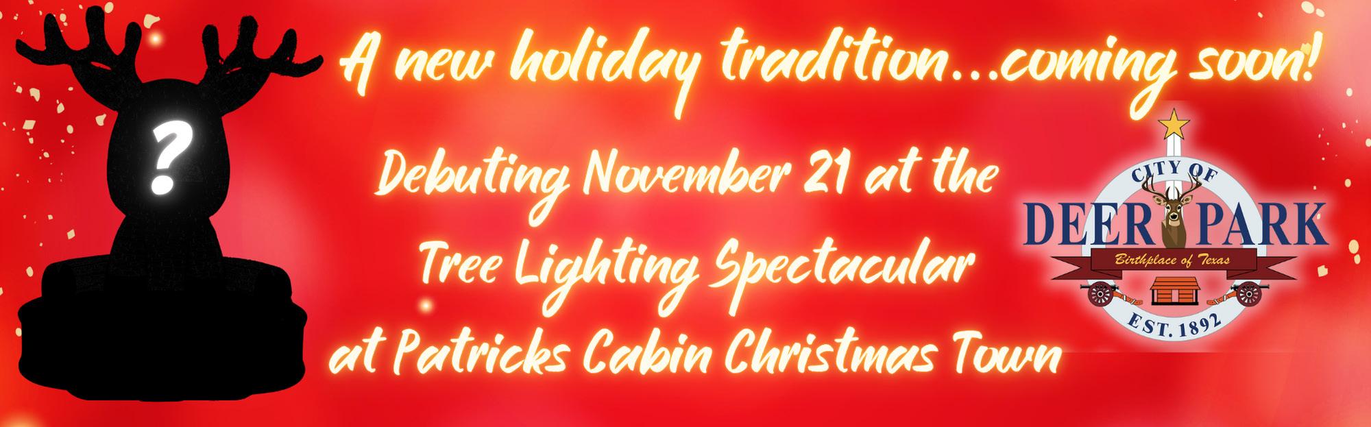 Join us for the City of Deer Park Tree Lighting Spectacular at Patrick's Cabin Christmas Town on Thursday, November 21 from 5:30pm to 9pm. The Annual Christmas Tree Lighting Ceremony kicks off at 6pm. Enjoy a variety of festive activities, including historic cabin tours, apple cider at the Simeon West Campfire, Christmas ornament decorating, Mrs. Claus's cookies, letter-writing to Santa, a live nativity, caroling, and shopping at Kris Kringle's Market Place. This free event is sponsored by the City of Deer Park and partners. Bring cash for concessions and shopping.