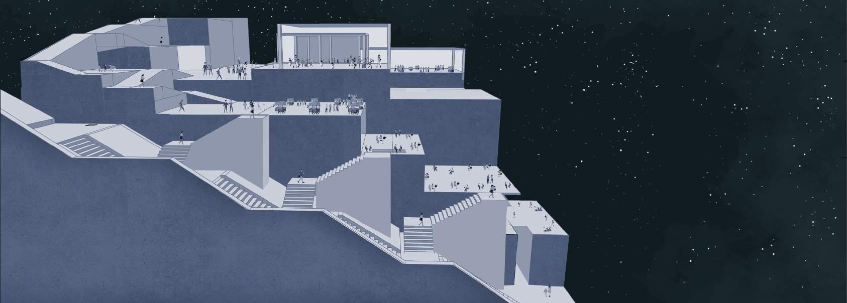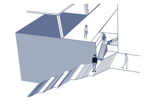 Espacios abiertos para ver y escuchar. Accesos que direccionan hacia las escalinatas.