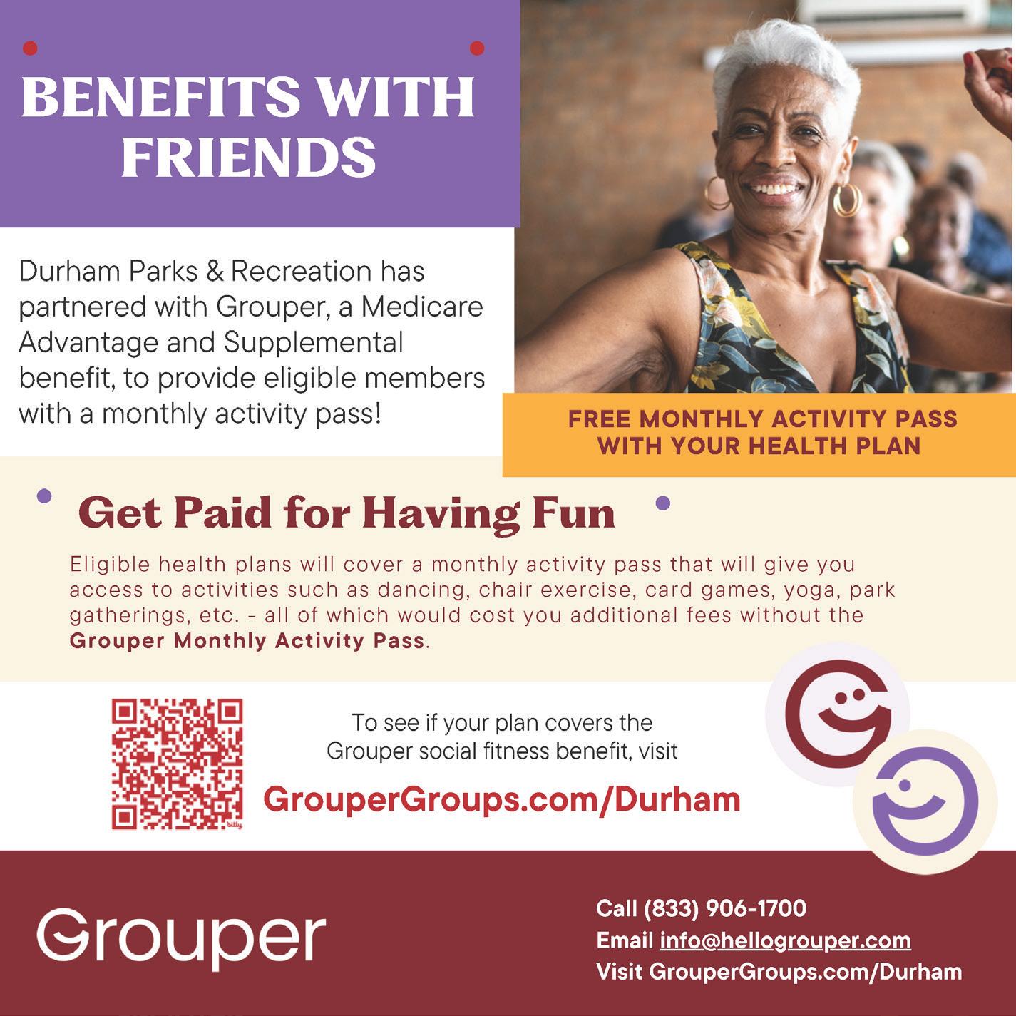 Please note: Advertising contained herein does not constitute an endorsement by the City of Durham Parks and Recreation or its staff. All information in this program guide is subject to change.