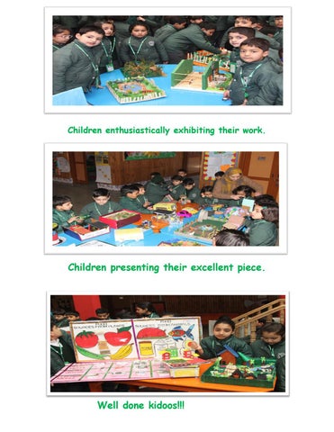 Children enthusiastically exhibiting their work.