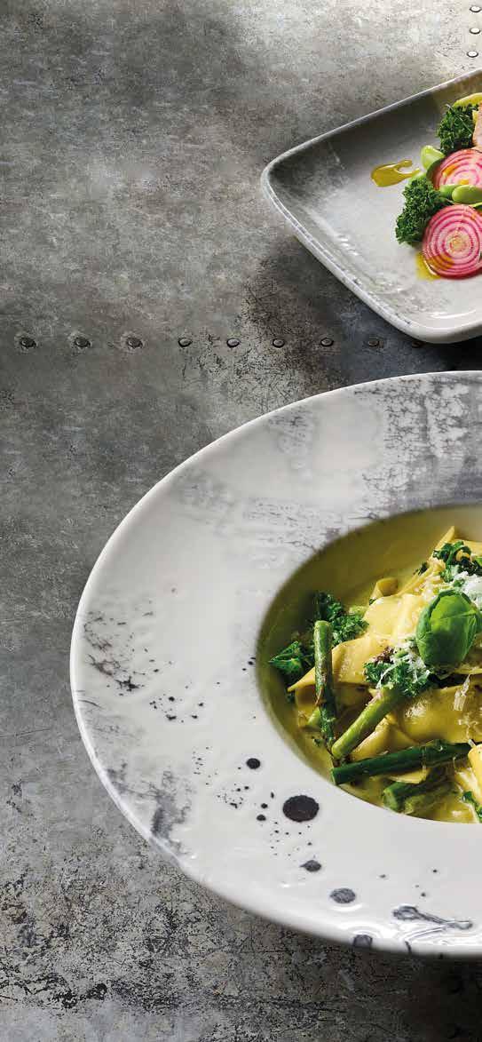 Add rustic charm to casual and fine dining menus with Rustico Stoneware. The perfect platform for a truly distinguished look.