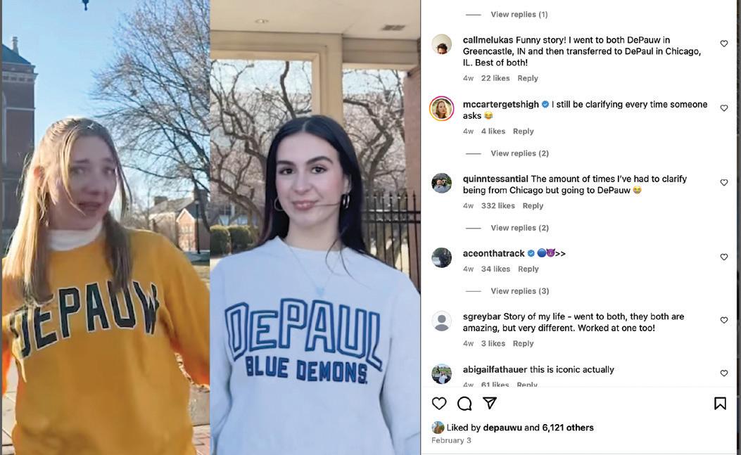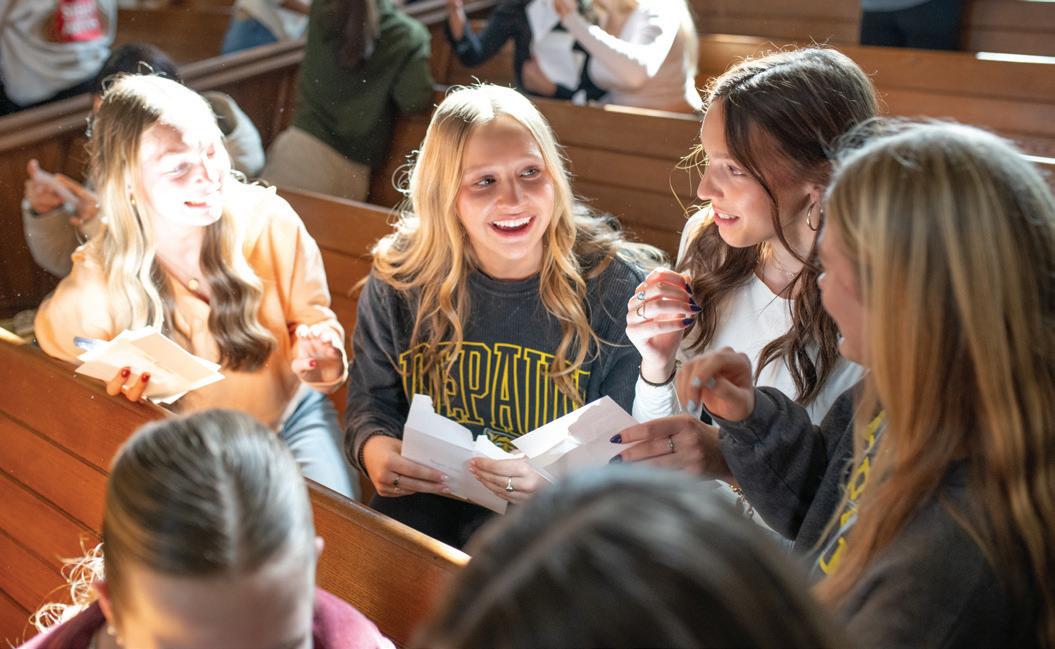 THE DEPAUW GREEK COMMUNITY recently welcomed 299 new members. Frae Binder, DePauw’s director of fraternity and sorority life, reports that since 2022 DePauw has seen a 15% and 11% growth in membership for Panhellenic and Interfraternity Council chapters respectively. Senior Kelli O’Neill, panhellenic vice president of recruitment says, “I think deferred recruitment gives potential new members the opportunity to get to know each chapter and its people and start to envision themselves in it.”