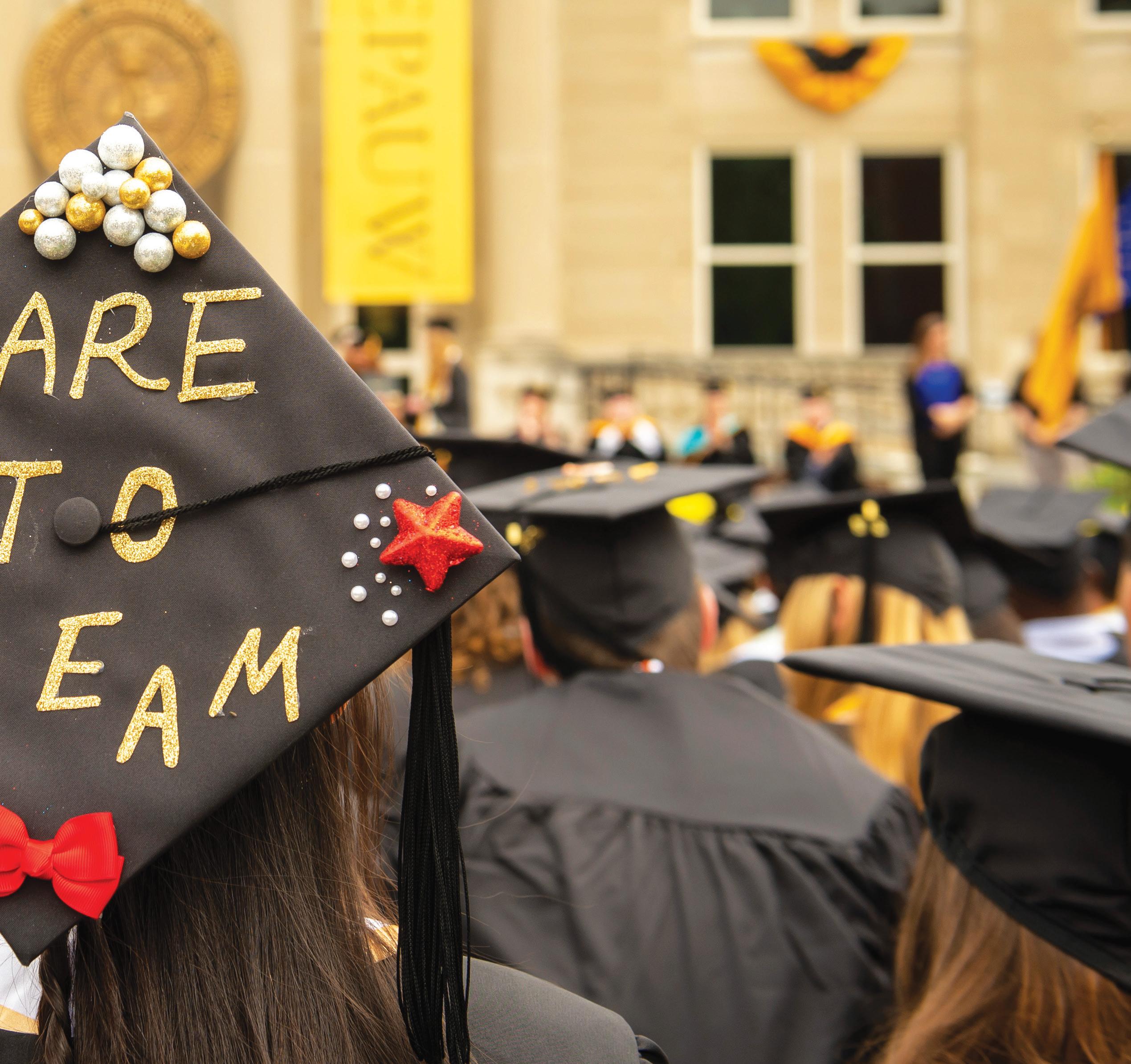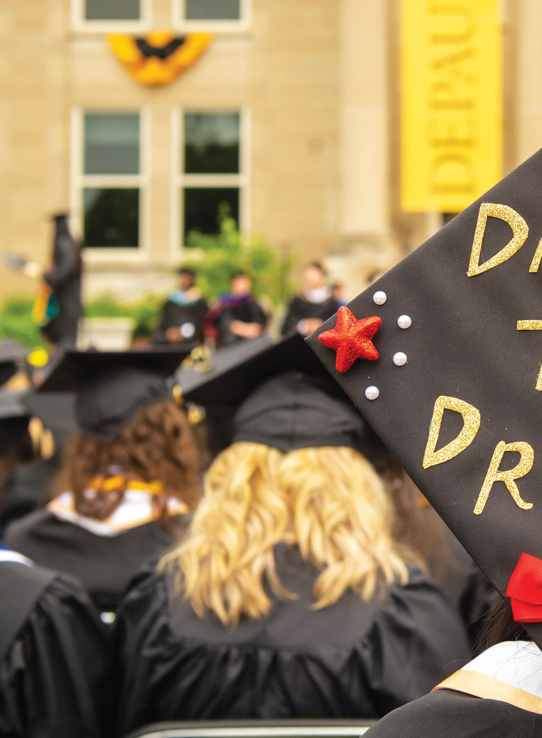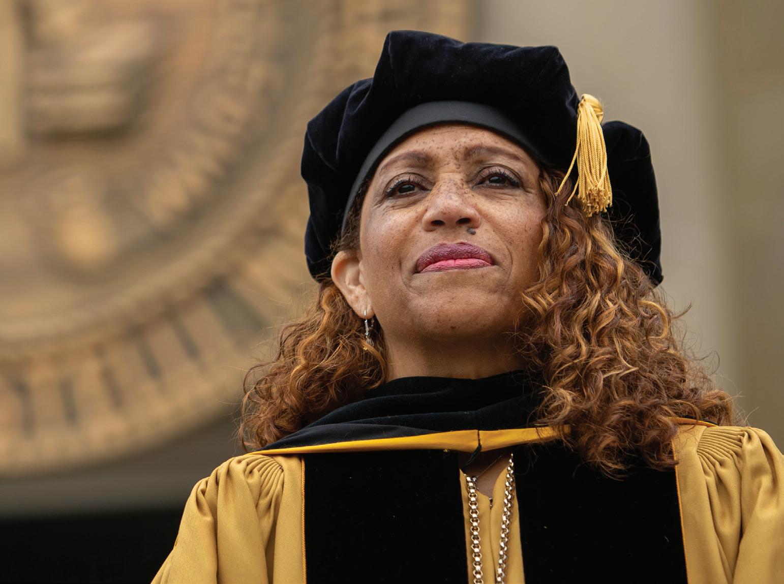 IT IS CELEBRATION SEASON at DePauw and the campus is a flurry of regalia, spring blooms and festivities. As campus makes the final preparations for our 2023 commencement season, commemorates the grand reopening of Roy O. West Library and celebrates DePauw’s largest applicant pool in history, my daily interactions with students, staff, faculty and alumni remind me of the tremendous power of this special place. Commencement season brings tears of joy and anticipation and reminds us of just how far our students have come during their time on campus. This change occurs not just because of the hard work and dedication of our students, but also because of the investment of our faculty, the support of our staff, the dedication of our alumni, the faith of their families and friends, and the strength of our whole community. DePauw is a university that changes lives.