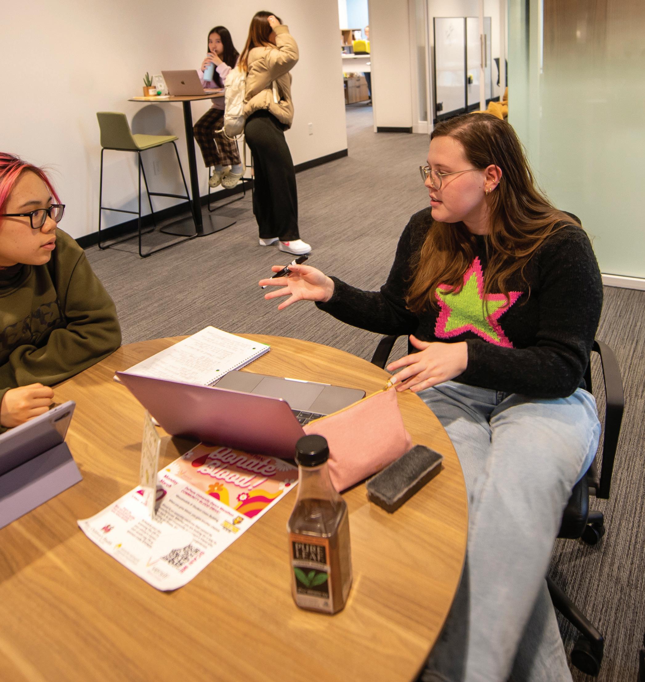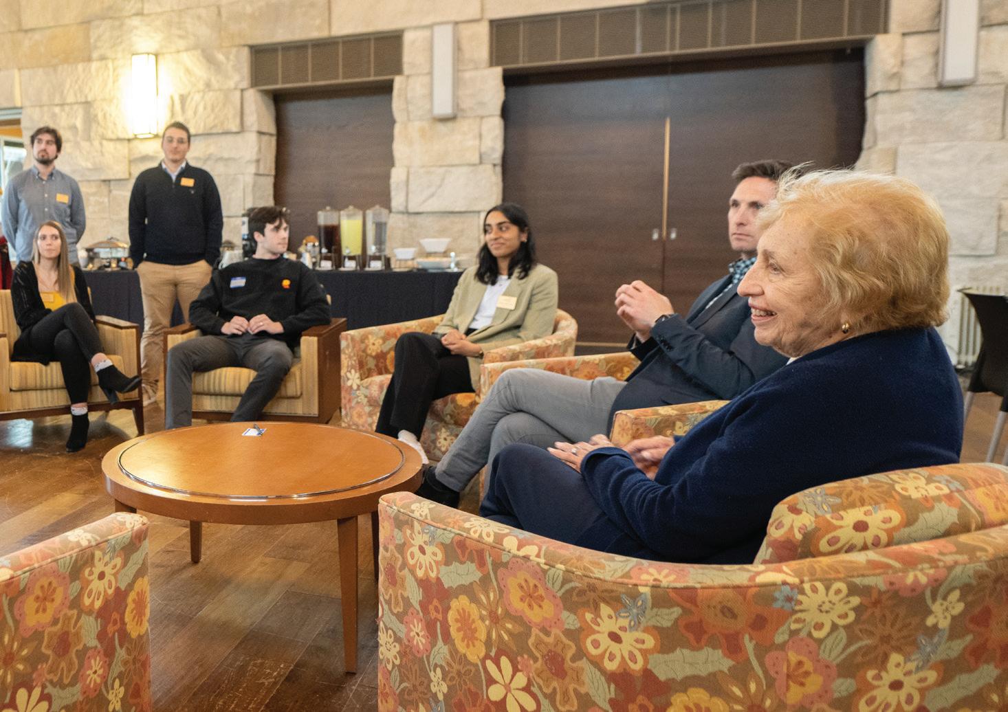 THE PRINDLE INSTITUTE FOR ETHICS celebrates its 15th anniversary this year. In March, the institute hosted a Courageous Conversation in Ethics discussion at the Green Center, moderated by Christiane Wisehart, host of Prindle’s Examining Ethics podcast. An anniversary reception followed. Right: Founder Janet Prindle ’58 (foreground) attended the celebration.