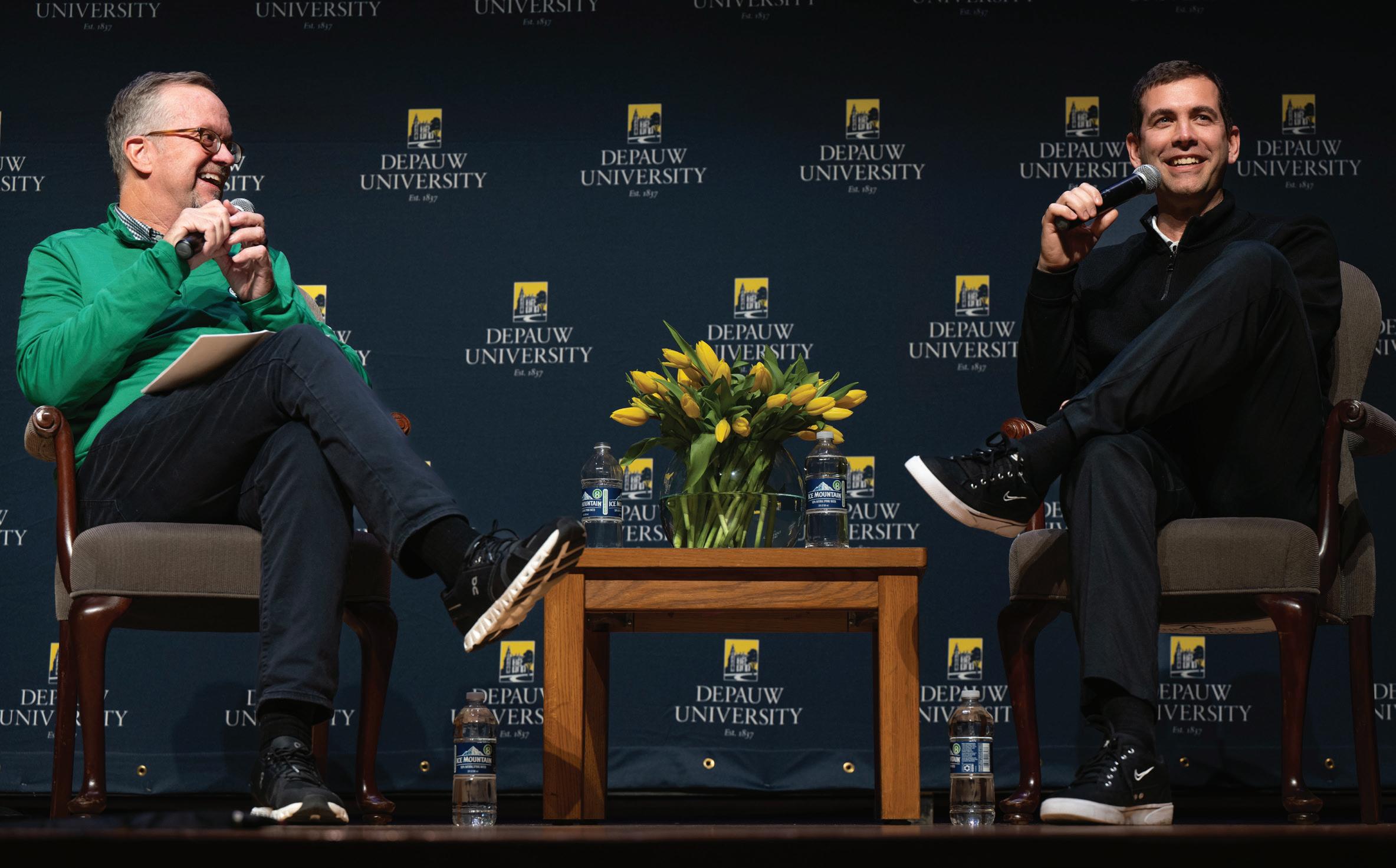 Coach Stevens and his wife, Tracy Wilhelmy Stevens ’99, came back to campus for a full-day visit. Stevens spoke to the men’s and women’s basketball teams and then sat down for an evening conversation with his former coach, Bill Fenlon, at Kresge Auditorium. The audience heard Coach Fenlon and Stevens recount fond memories of their time together and long-standing friendship. Stevens then shared reflections about his time at DePauw and what it has meant to his professional development and growth.