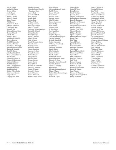 Julie R. Phelps Michael G. Pierce Brooke A. Pike Joe H. Pogue Gabriel Porras Robert T. Porter Ralph G. Powell Robert Prange Fidel Ramos Matthew H. Ranft Jeffrey T. Ratterman Catherine L. Ray Steven P. Ray Rebecca Johnson Reck Thomas F. Reed John E. Reh Robert S. Reich John Joseph Reilly III Terry L. Reincke Avril M. Reindollar Martha J. Reineke Theodore C. Reissing Jr. Nancy Hardman Revnes Thomas B. Reynolds David G. Riemer John Page Ringleb II Anne Lorraine Risdon Ann T. Robb Edward S. Roberts Jr. Eleanor M. Robertson Marjorie Robinson Raul I. Rodriguez Sarah L. Roggenkamp Alfred H. Rohol III Brad Rohrscheib Bridget Fallen Rooks Mary Susan Rooney Virginia Rowan Gregory Alan Rowe