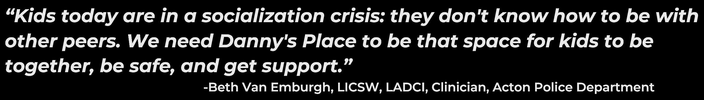 The call to action is clear and loud: our community needs Danny’s Place's unique approach in order to meet the needs of our young people and their families.