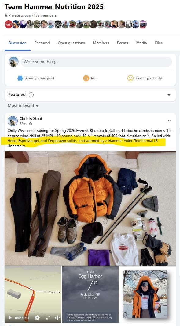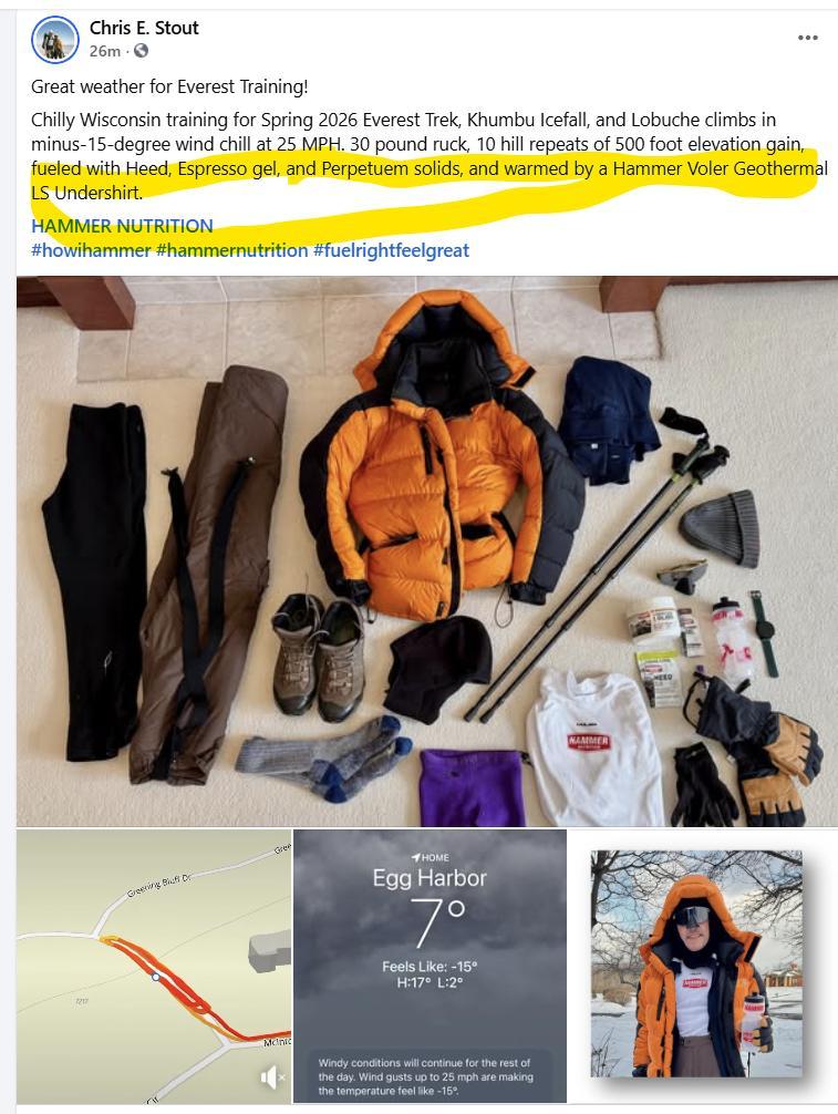 I’m thinking this will be an opportunity for me to support and increase Hammer Nutrition’s visibility in both my training (I’ll be launching an additional Series on this on my YouTube Channel) and climb’s nutrition needs and fueling.